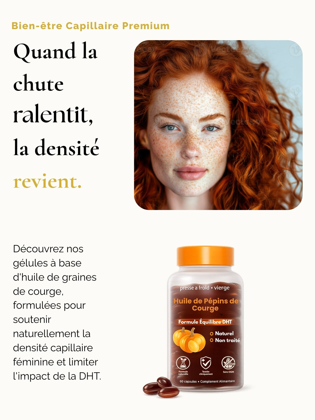 Non. Contrairement à certains traitements contre la chute des cheveux pouvant créer une dépendance, notre formule à base d’huile de graines de courge est un complément naturel. Vous pouvez arrêter son utilisation à tout moment sans ressentir d’effet de manque ni de “chute rebond” qui survient parfois lors de l’arrêt de traitements sur ordonnance.